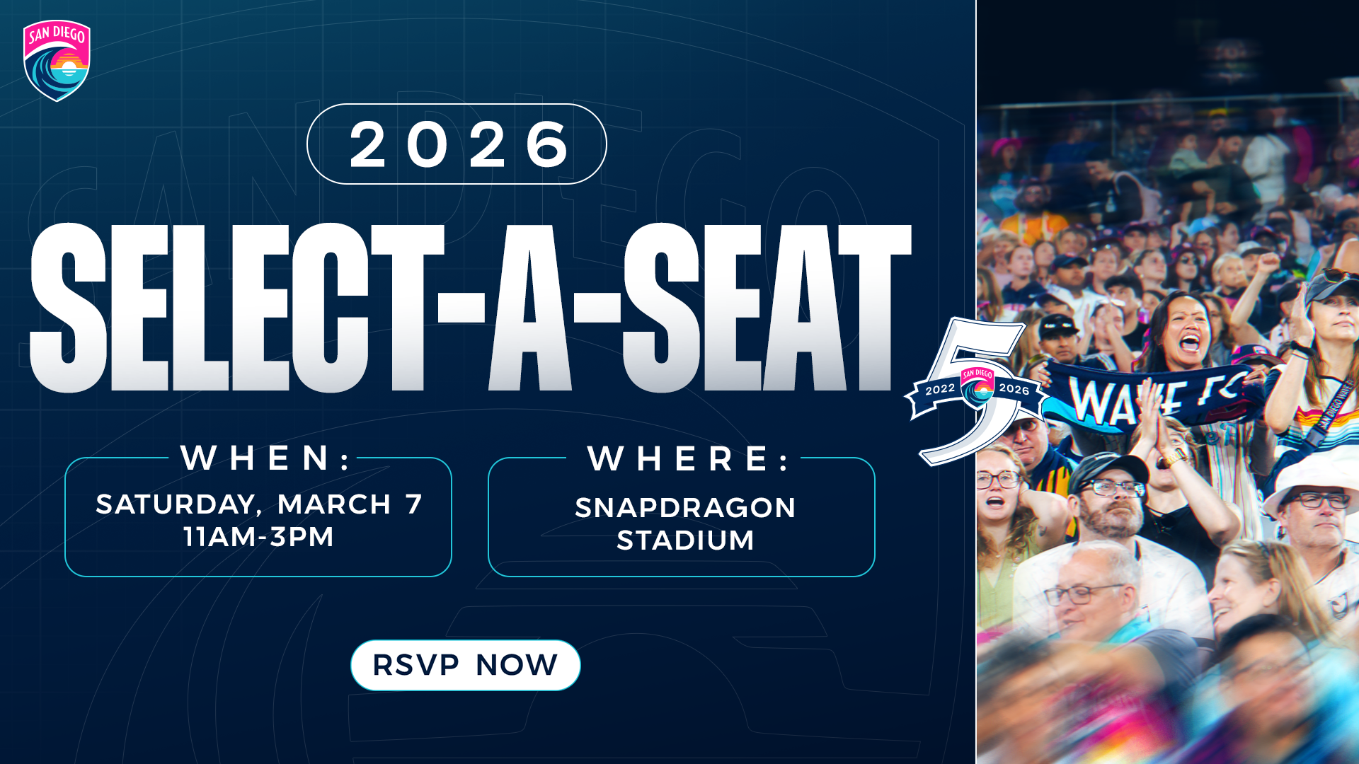 Curious about any 2026 ticket plans? Join us for an exclusive in-person event to explore your options, get first dibs on hand-picking your seats, and go behind-the-scenes at Snapdragon Stadium for a Wave FC locker room tour!